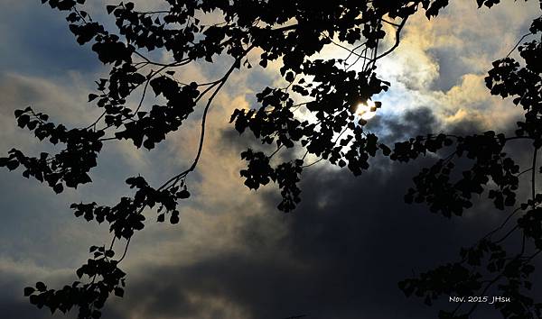 太陽躲在雲後面柔柔的射出了幾條雲隙光